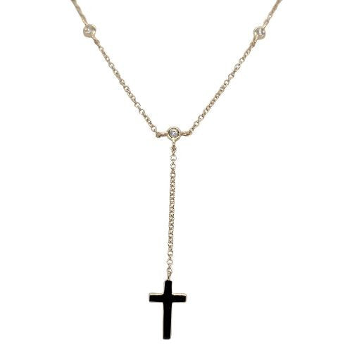 14 Karat Yellow 3 Diamonds=.05 Carat GH SI Drop Cross 15"+3" Necklace