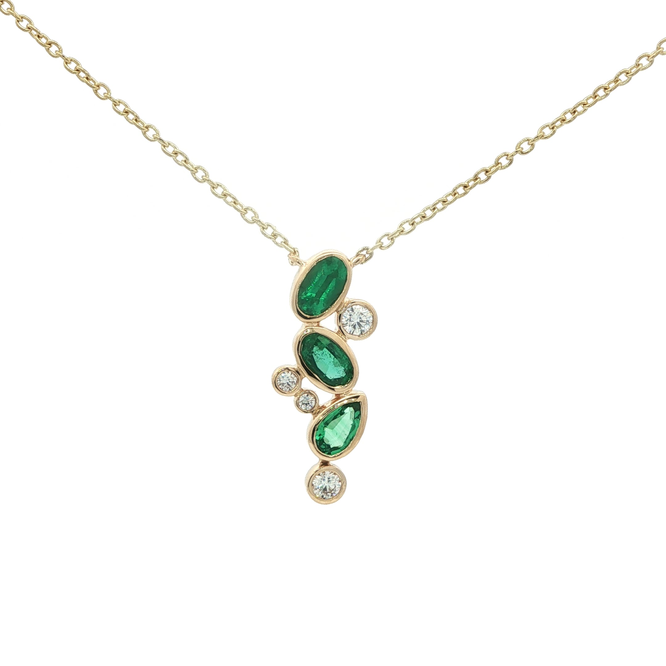 14 Karat Yellow Gold 3 Emerald=.66 Carat 4 Diamonds=.12 Carat FG VS Necklace