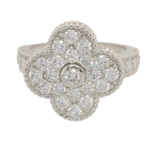 14 Karat White Gold 29 Lab Grown Diamonds=1.25 Carat FG VS Clover Ring