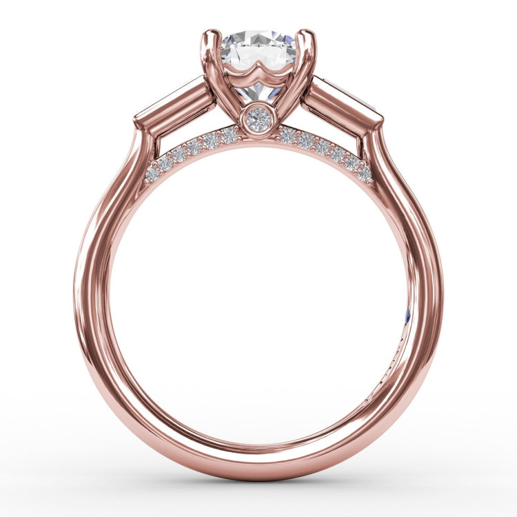 Three-Stone Round Diamond Engagement Ring With Tapered Baguettes