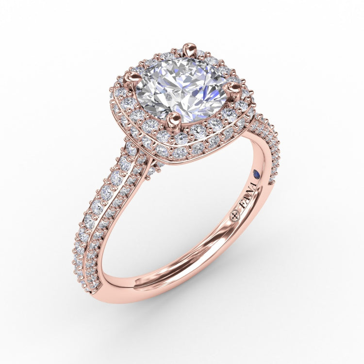 Cushion-Shaped Waterfall Halo Engagement Ring With Pavé Band