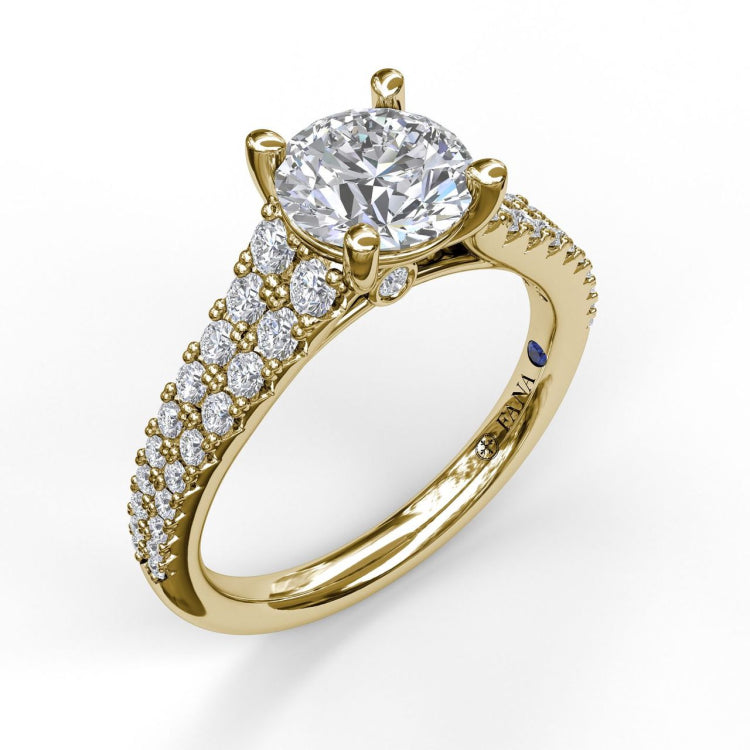 Two rows of elegant diamonds embody the timelessness of your romance in this charming ring style. This double row graduated engagement ring can be special ordered in any finger size, in Platinum, 18KT & 14KT gold and can be customized for any shape and size centerstone.