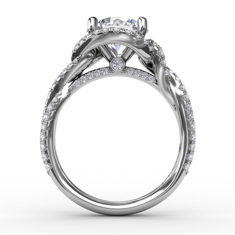 Contemporary Round Diamond Halo Engagement Ring With Twisted Shank