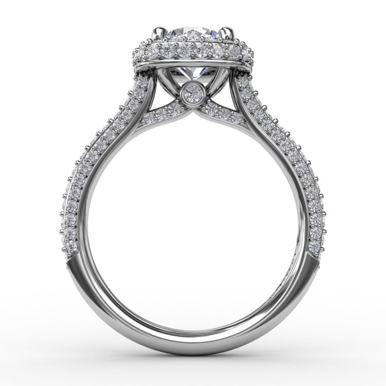 Cushion-Shaped Waterfall Halo Engagement Ring With Pavé Band