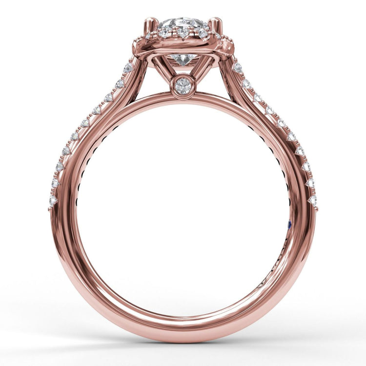 Delicate Oval Shaped Halo And Pave Band Engagement Ring