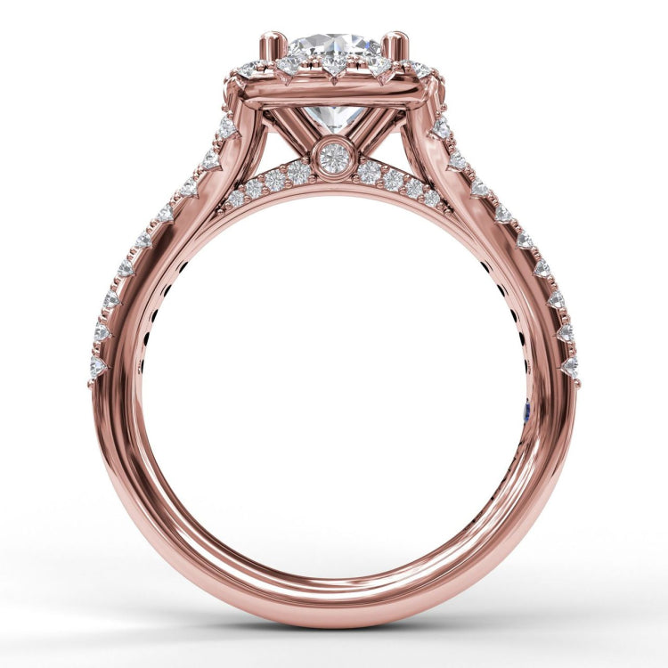 Cushion Halo Engagement Ring with a Diamond Encrusted Split Band