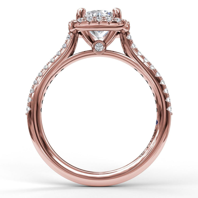 Delicate Cushion Halo Engagement Ring With Pave Shank