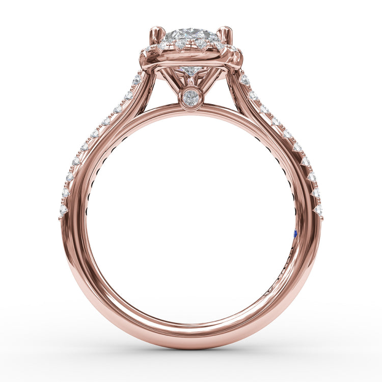 Delicate Pear Shaped Halo And Pave Band Engagement Ring
