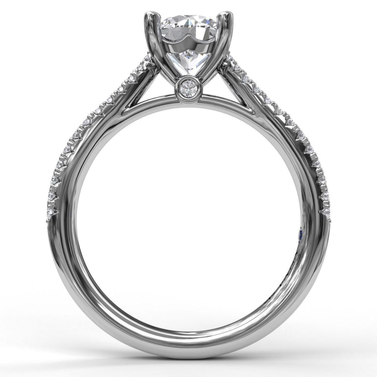 Two rows of elegant diamonds embody the timelessness of your romance in this charming ring style. This delicate double row engagement ring can be special ordered in any finger size, in Platinum, 18KT & 14KT gold and can be customized for any shape and size centerstone.