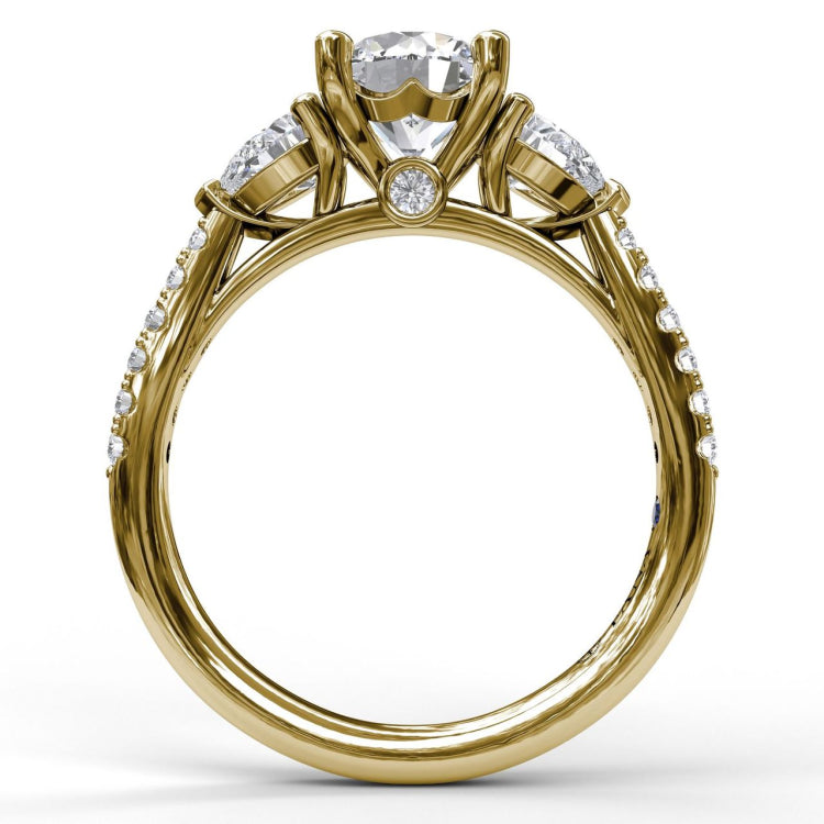 Three-Stone Engagement Ring With Pear Cut Side Stones