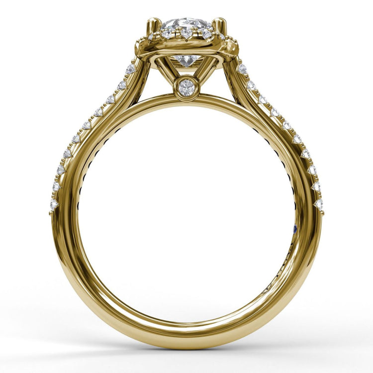 Delicate Oval Shaped Halo And Pave Band Engagement Ring