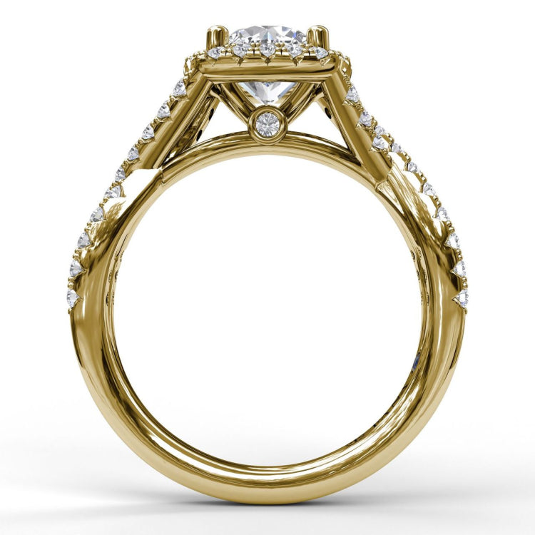 Cushion Halo With Diamond And Gold Twist Engagement Ring