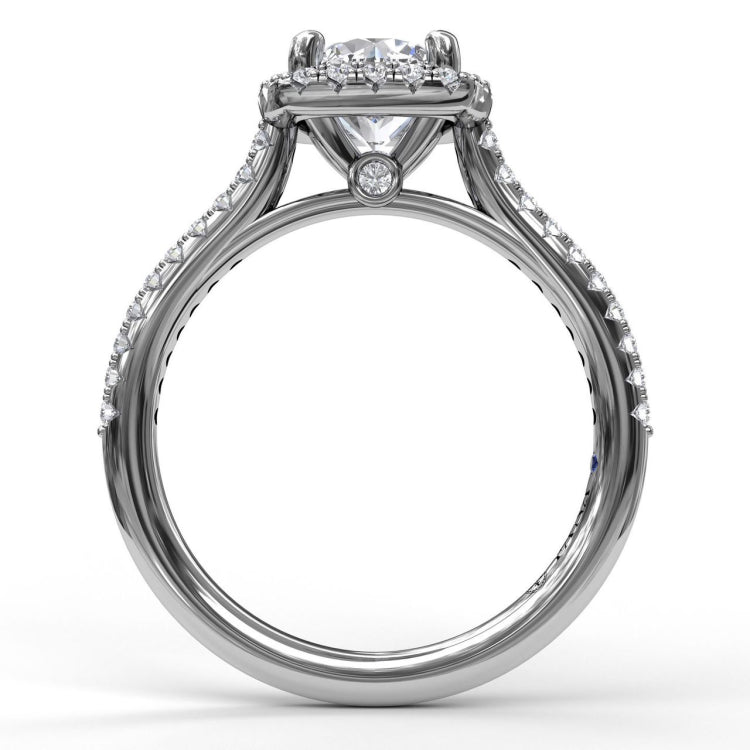 Delicate Cushion Halo Engagement Ring With Pave Shank