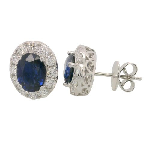 14 Karat White Gold 2-8X6mm Sapphire 24 Diamonds= 1.01 Carat GH VS-SI Halo Earrings