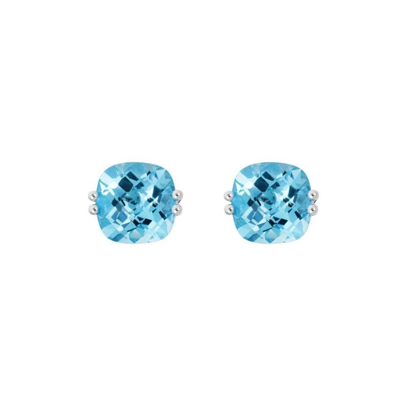 14 Karat White Gold Swiss Blue Topaz 6X7mm Cushion Checkerboard=2.50 Carat Earrings
