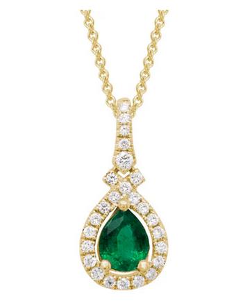 14 Karat Yellow Gold 5X4mm Emerald=.32 Carat 25 Diamonds= .14 Carat GH VS 16-18" Chain