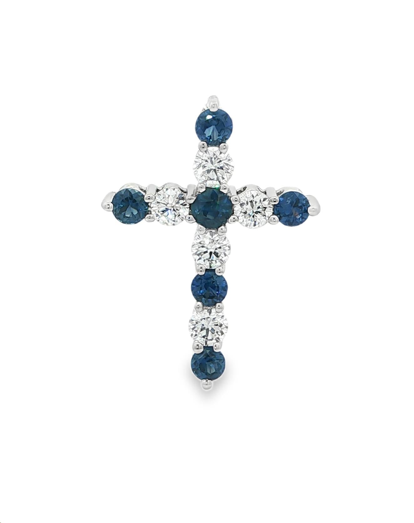 10 Karat White Gold Cross Pendant 5 Lab Grown Diamonds=.49 Carat 6 Sapphires=.63 Carat-Pendant only no chain