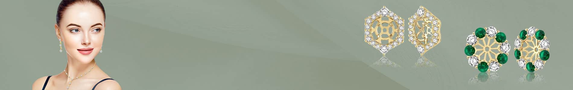 2.3 MM Round Cut Emerald and 1/2 Ctw Round Cut Diamond Precious Earrings Jacket in 14K Yellow Gold