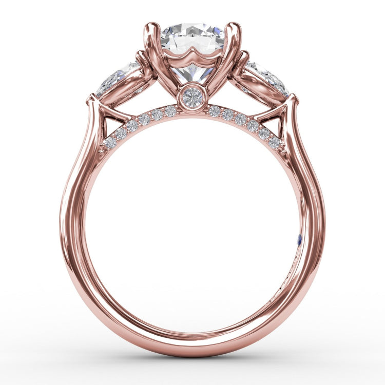 Classic Three-Stone Engagement Ring With Pear-Shape Side Diamonds