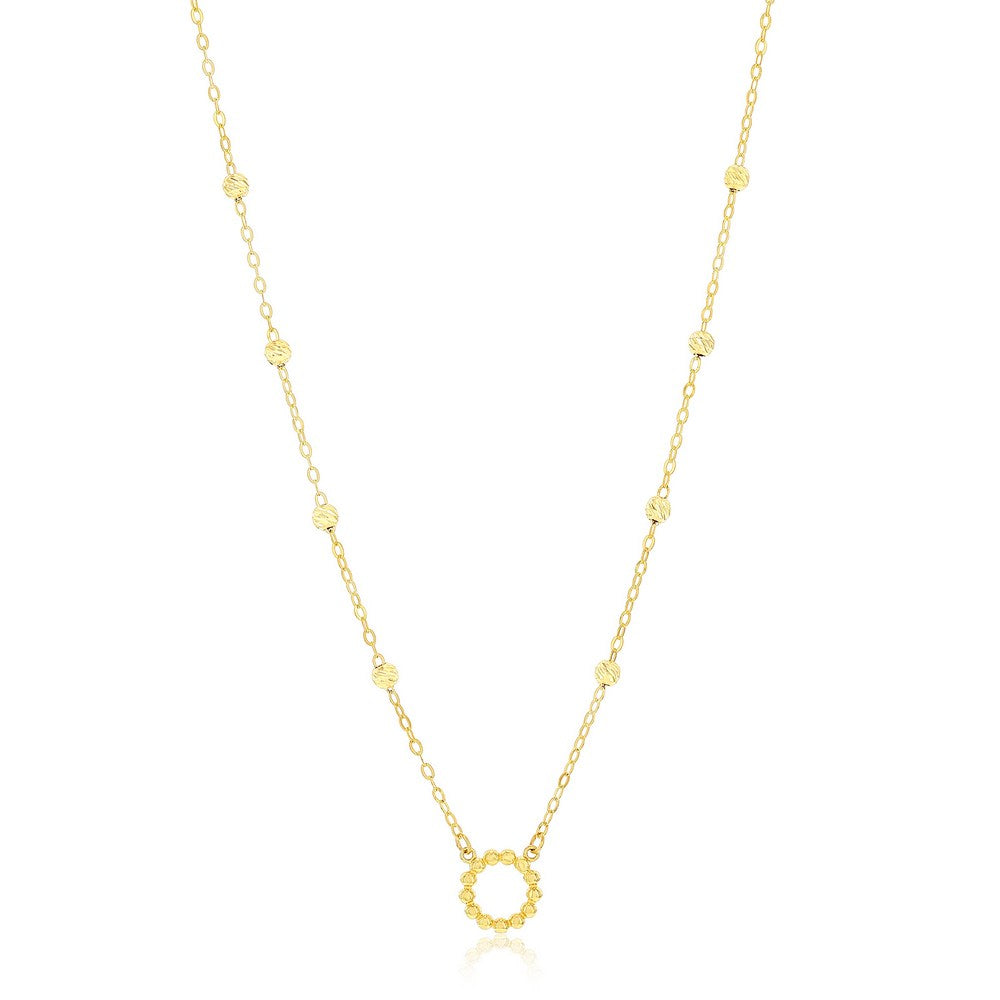 14K Yellow Gold, Circle D-C Beaded Necklace