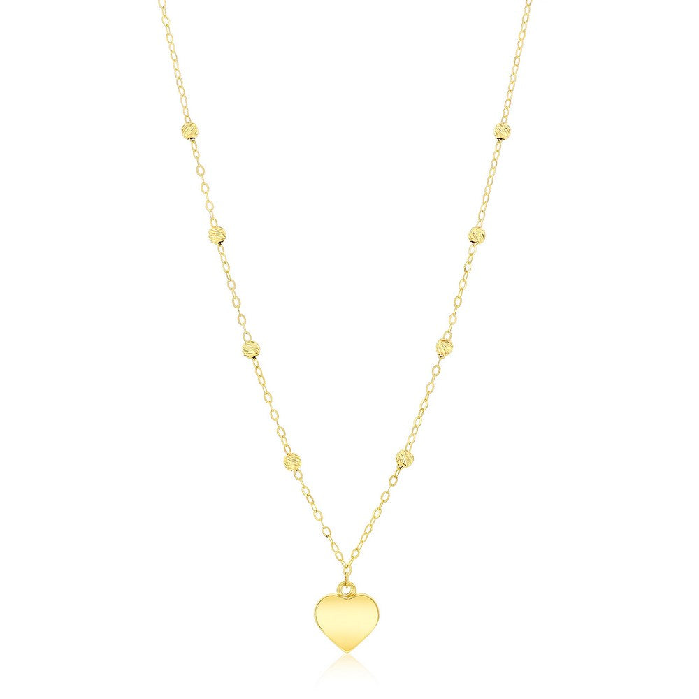 14K Yellow Gold, Polished Heart & D-C Bead Necklace