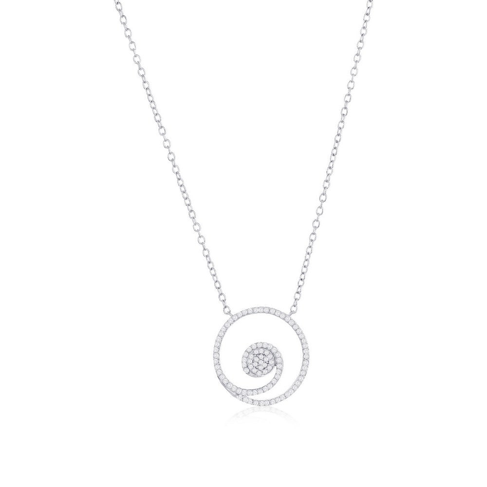 Sterling Silver Circle Wave Diamond Necklace - (93 Stones)