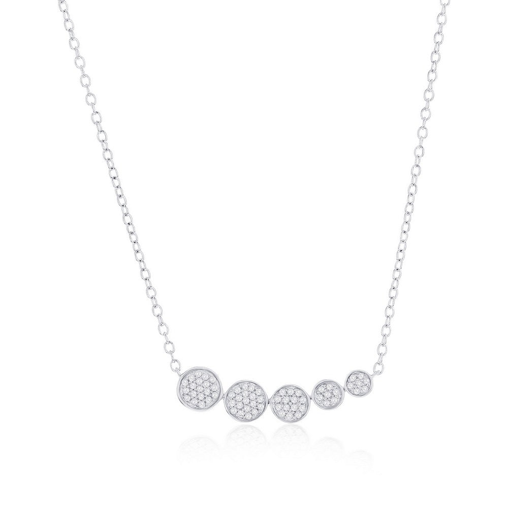 Sterling Silver Round Graduating Bar Diamond Necklace - (66 Stones)