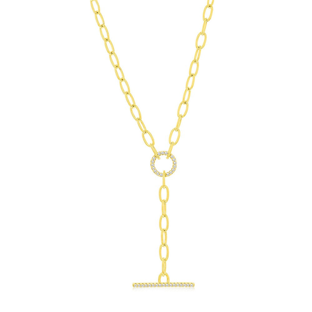Sterling Silver, Toggle CZ Paperclip Necklace - Gold Plated