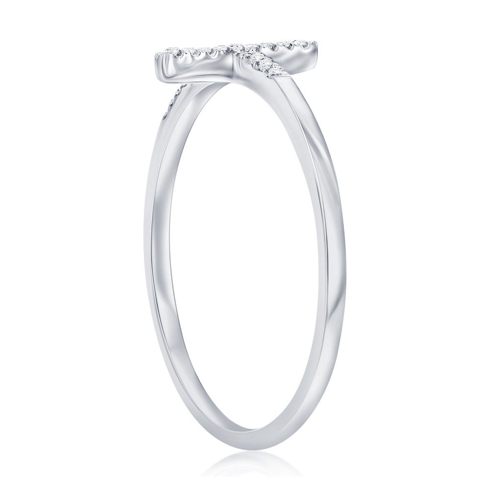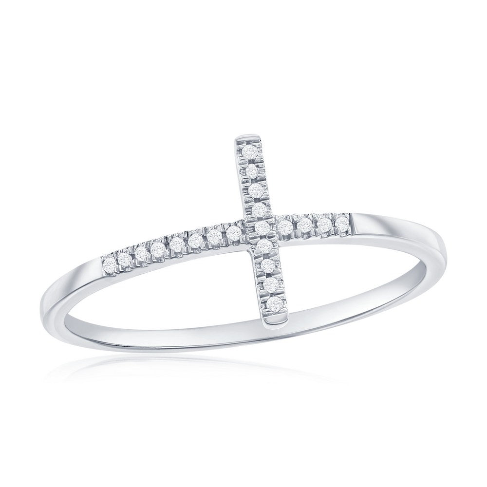 Sterling Silver Sideways Cross Diamond Ring - (21 Stones)