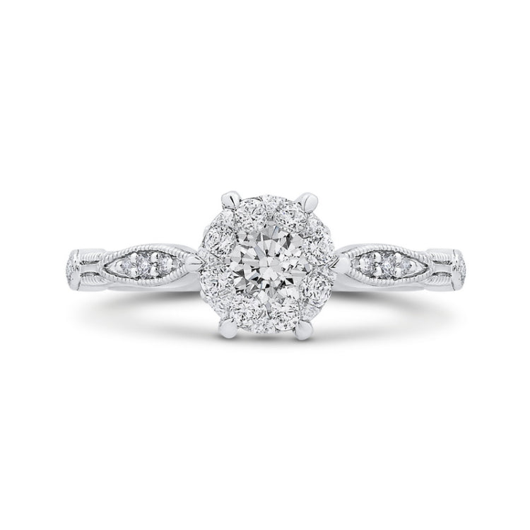 Round and Marquise Cut Diamond Engagement Ring in 14K White Gold