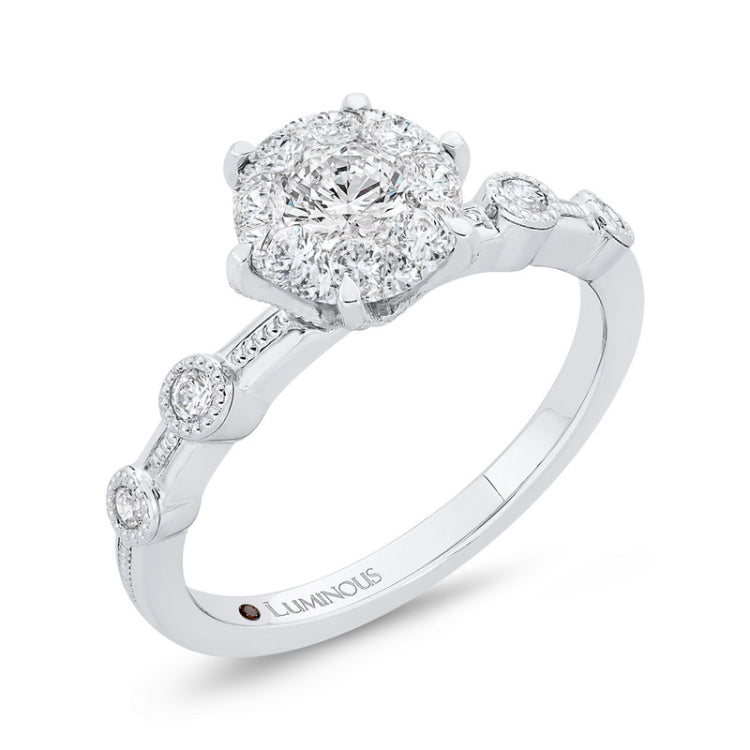 Round Diamond Engagement Ring in 14K White Gold, Side Stone Shape: Round, Side Stone Color: IJ, Side Stone: 14