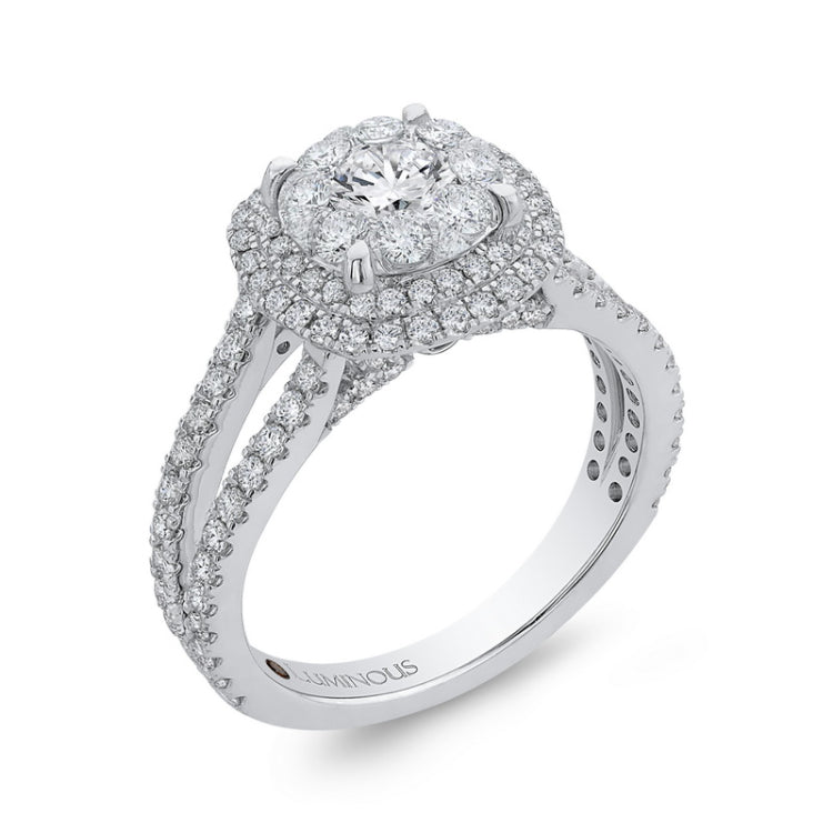 Round Diamond Double Halo Engagement Ring with Blue Sapphire in 14K White Gold