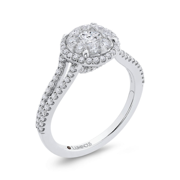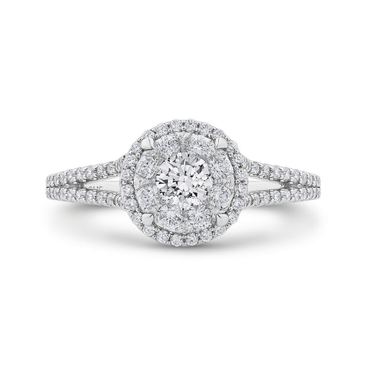 Split Shank Round Diamond Halo Engagement Ring in 14K White Gold