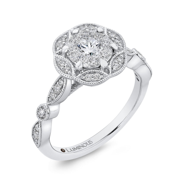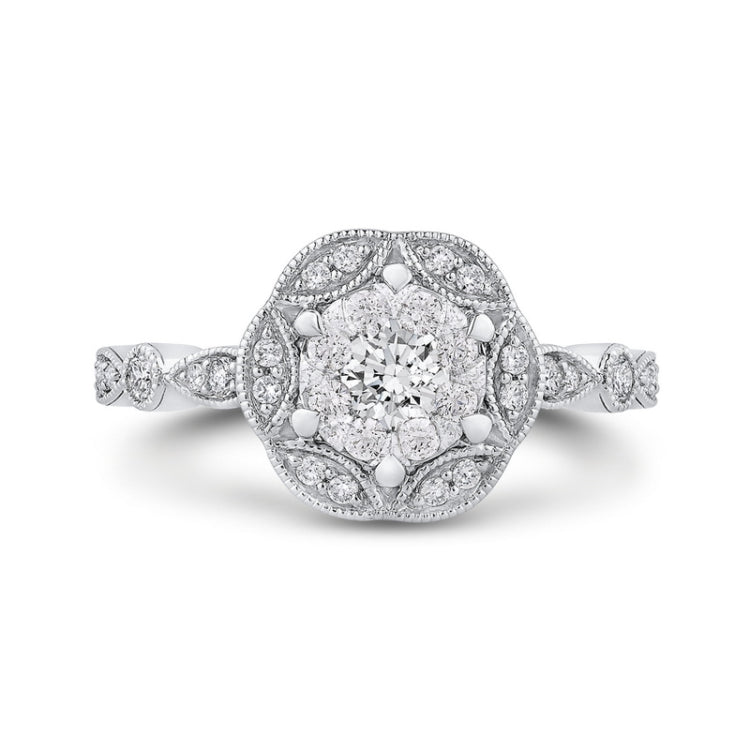 Round Diamond Flower Engagement Ring in 14K White Gold