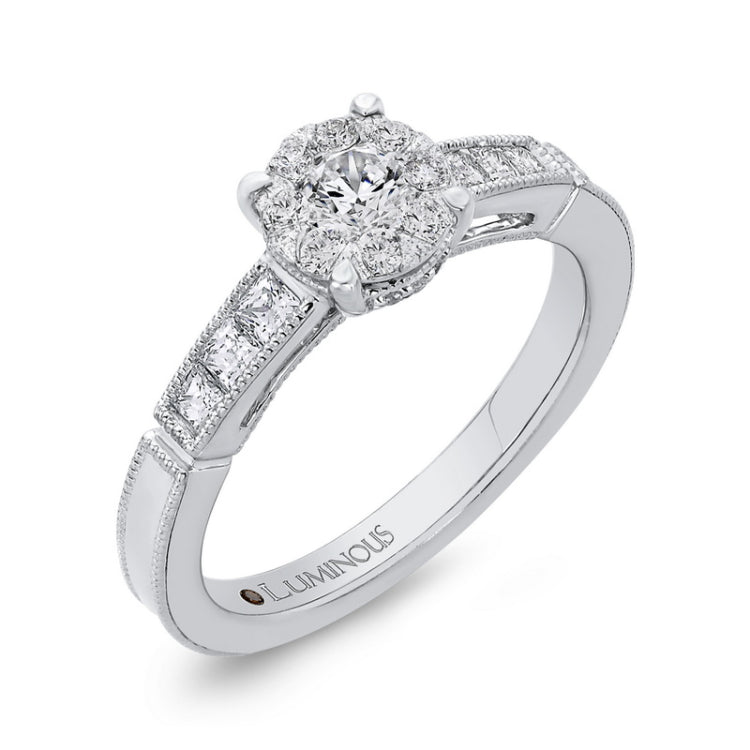 Round & Princess Cut Diamond Engagement Ring in 14K White Gold
