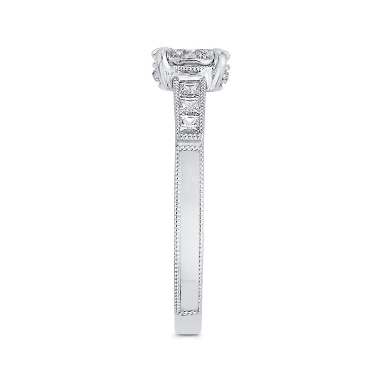 Round & Princess Cut Diamond Engagement Ring in 14K White Gold, Side Stone Shape: Round & Princess, Side Stone Color: IJ, Side Stone: 22