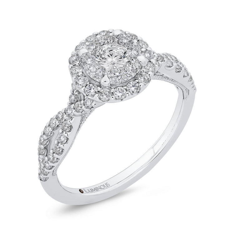 Split Shank Round Diamond Halo Engagement Ring in 14K White Gold