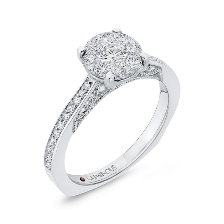Diamond Engagement Ring in 14K White Gold, Side Stone Shape: Round, Side Stone Color: IJ, Side Stone: 44