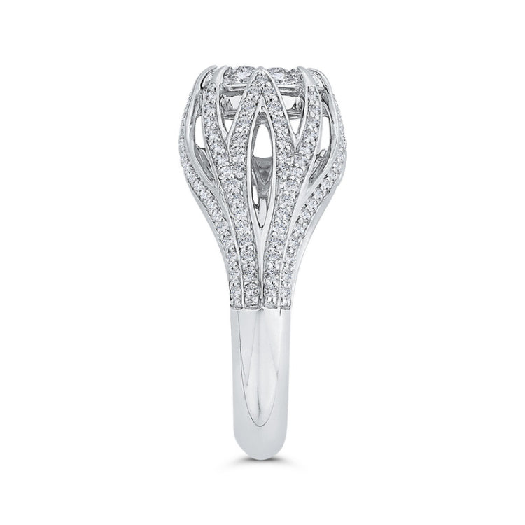 Split Shank Diamond Engagement Ring in 14K White Gold, Side Stone Shape: Round, Side Stone Color: IJ, Side Stone: 158