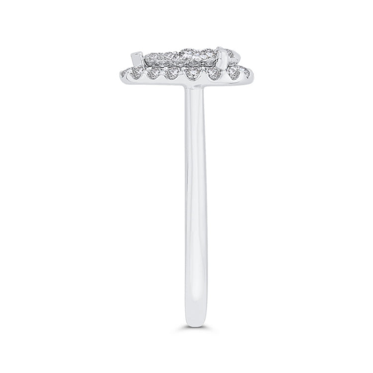 Round Diamond Pear Shape Halo Engagement Ring in 14K White Gold, Side Stone Shape: Round, Side Stone Color: IJ, Side Stone: 34