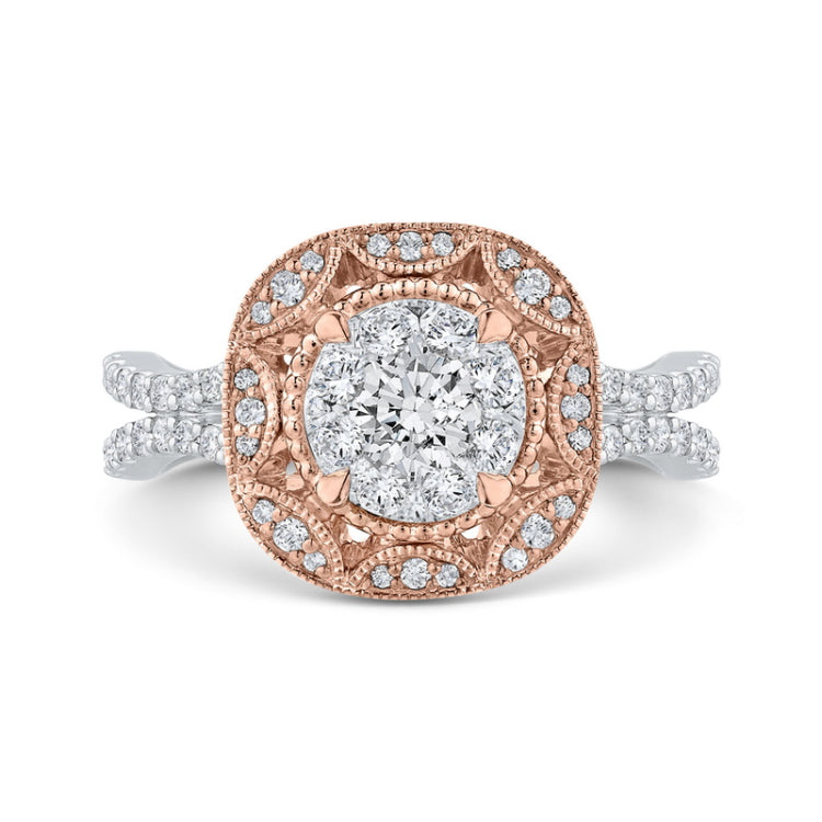Diamond Flower Engagement Ring in 14K Two Tone Gold