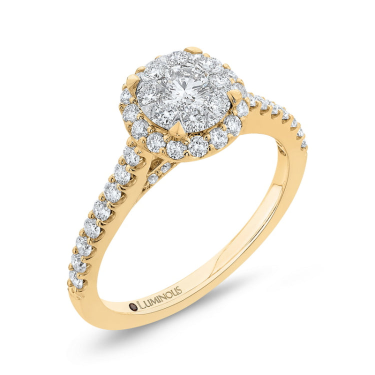 Diamond Halo Engagement Ring in 14K Two Tone Gold, Side Stone Shape: Round, Side Stone Color: IJ, Side Stone: 56