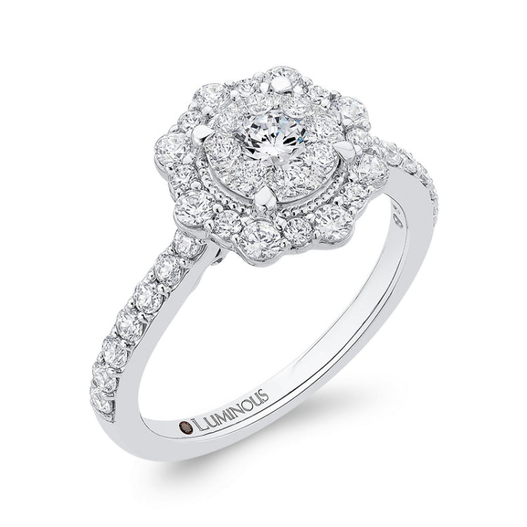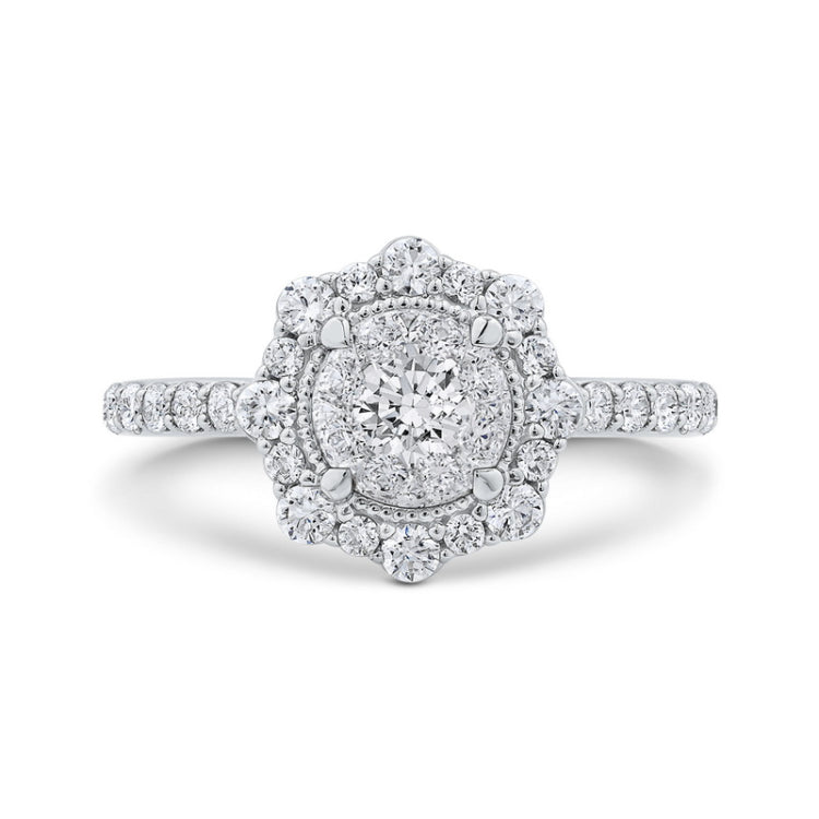 Diamond Flower Halo Engagement Ring in 14K White Gold