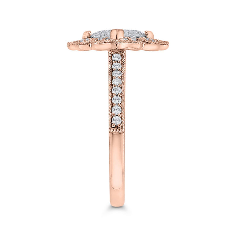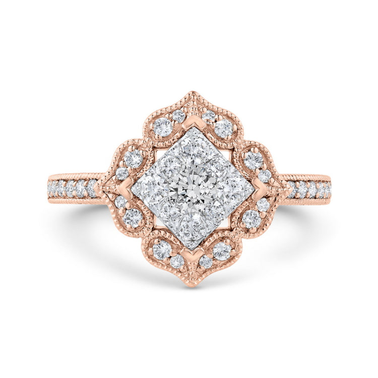 Diamond Flower Shape Engagement Ring in 14K Two Tone Gold