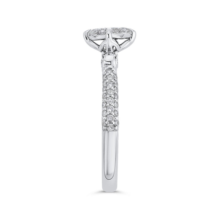 Round Diamond Engagement Ring in 14K White Gold, Side Stone Shape: Round, Side Stone Color: IJ, Side Stone: 56