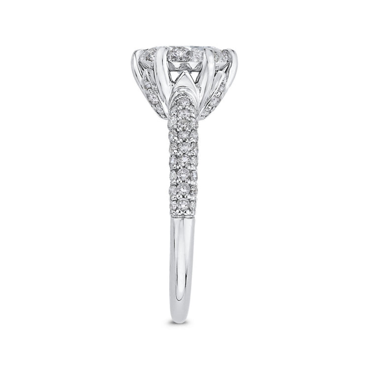 Round Diamond Engagement Ring with Six-Prong Head in 14K White Gold, Side Stone Shape: Round, Side Stone Color: IJ, Side Stone: 76