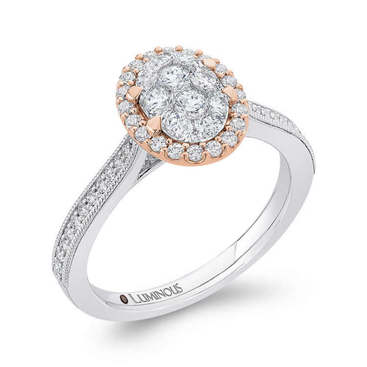 Round Diamond Halo Engagement Ring in 14K Two Tone Gold