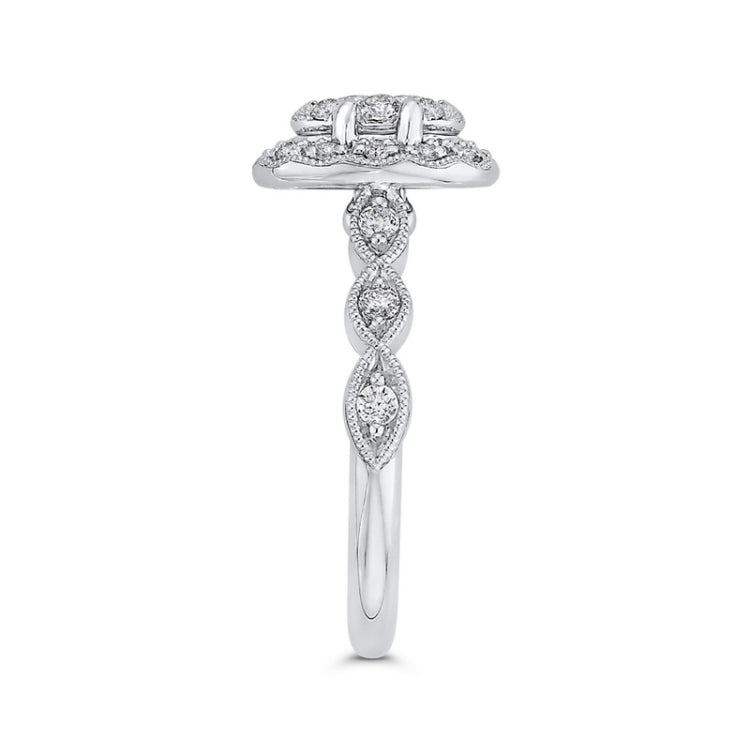 Round Diamond Halo Engagement Ring in 14K White Gold, Side Stone Shape: Round, Side Stone Color: IJ, Side Stone: 29