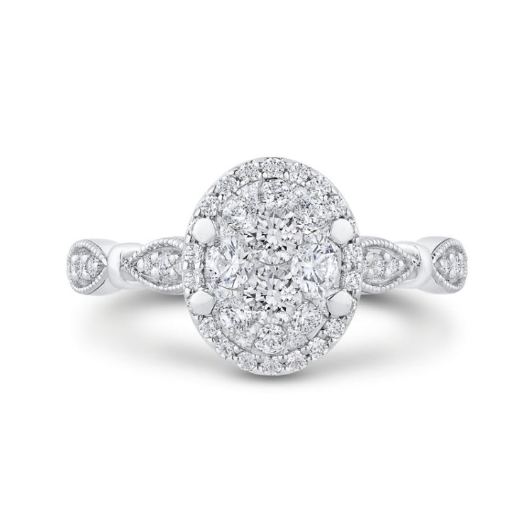 Round Diamond Halo Engagement Ring in 14K White Gold, Side Stone Shape: Round, Side Stone Color: IJ, Side Stone: 45