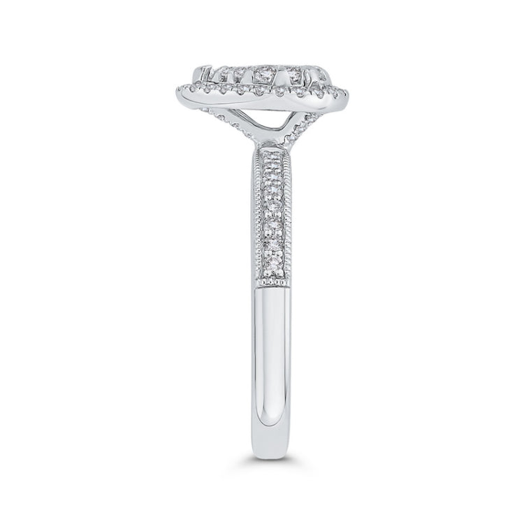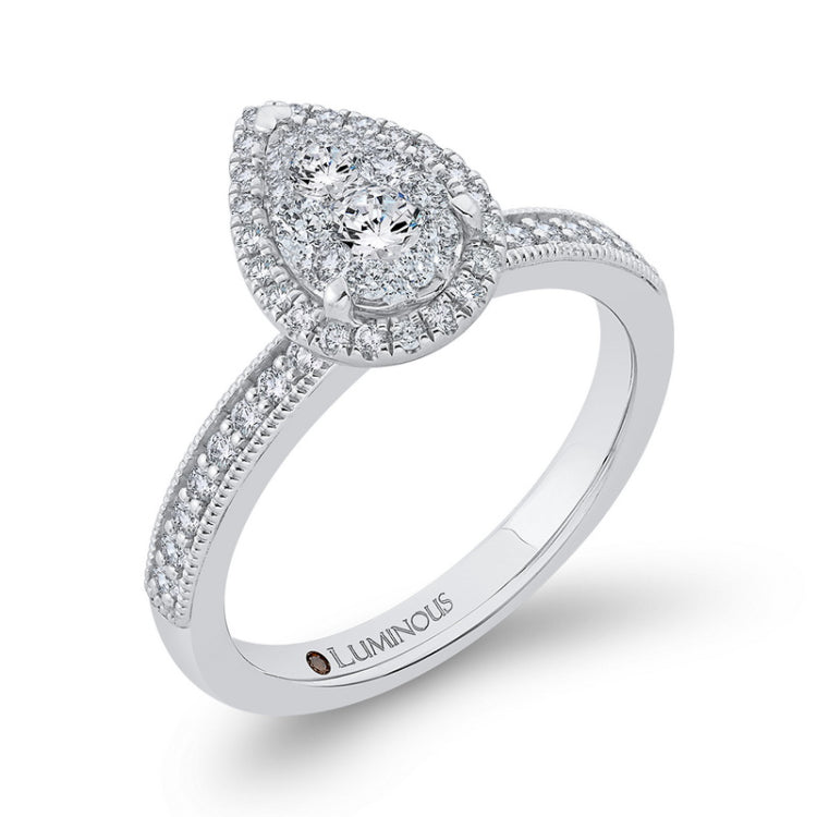 Round Diamond Pear Shape Halo Engagement Ring in 14K White Gold